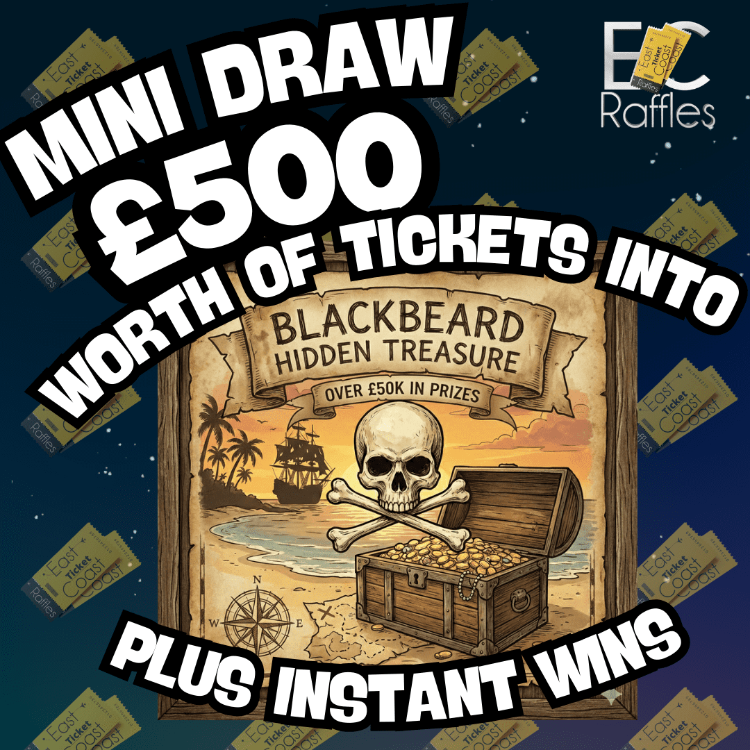 You may enter the competition online or for free by post by sending your entry to East Coast Raffles on a postcard. You must have an account on East Coast Raffles for your entry to be processed. All details on your entry MUST correspond to the details on your account to receive the order confirmation and ticket number. Postal entries received without a registered account cannot be processed.