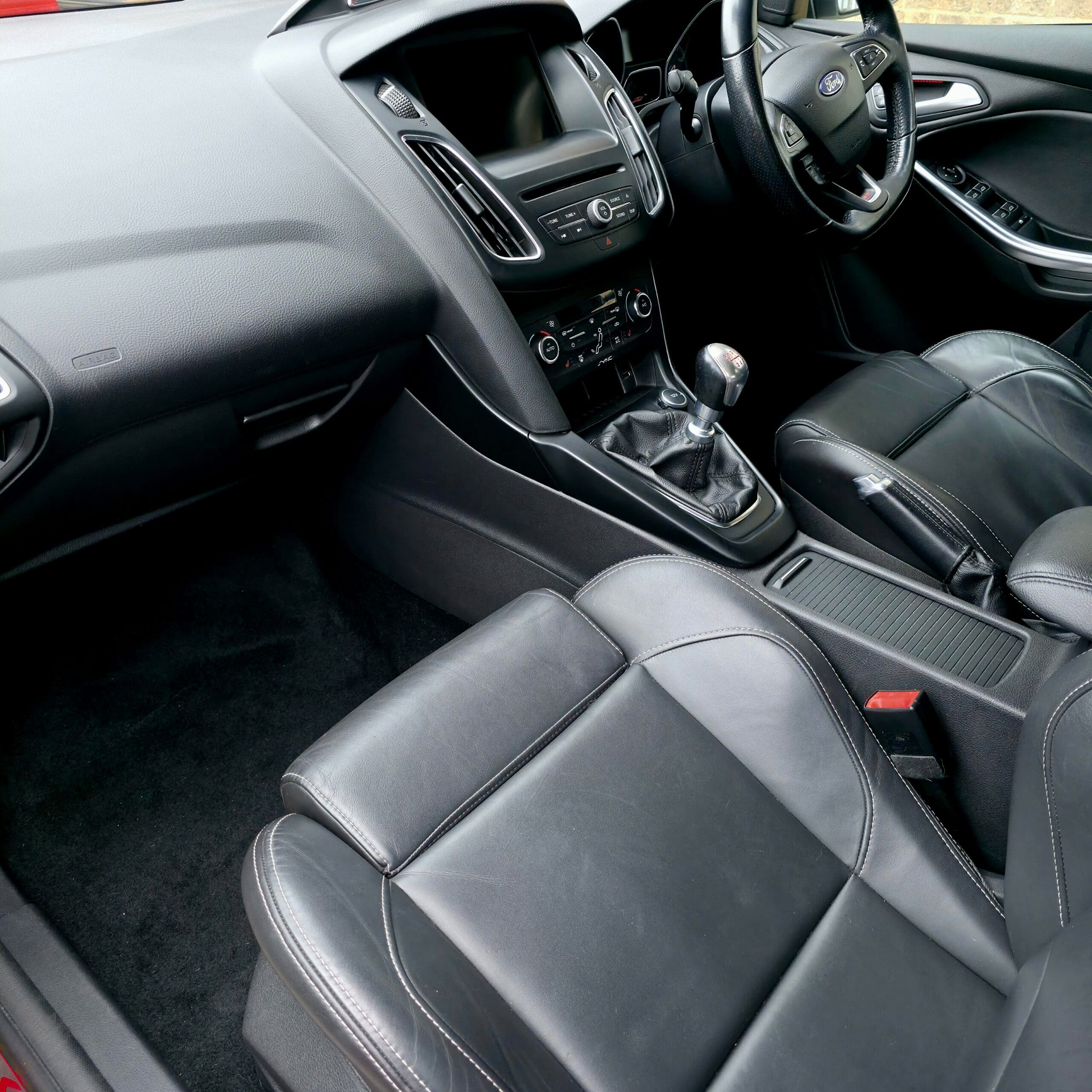 12V Power Socket – Front, 18in Alloy Wheels – 10 Spoke – Rock Metallic, 8in Touchscreen Colour Display, ABS – Anti-lock Braking System, AUX Connection, Air Conditioning – Dual Zone Electronic Automatic Temperature Control, Airbag – Front Passenger, Airbags – Curtain, Airbags – Curtain Rear, Airbags – Side Impact, Anti-Submarining Seat Bases, Automatic Dimming Rear View Mirror, Automatic Rain Sensing Wipers, Bi-Xenon Headlights, Bluetooth Handsfree Phone System, Body Colour Bumpers, Body Colour Exterior Mirrors, Brake Calipers Painted Red, Centre Console – additional 12V power socket, City Pack, Colour TFT Instrument Cluster Display, Cruise Control with Adjustable Speed Limiter, Door Handles – Body Colour, Door Mirrors with Integrated Indicators, Drivers Airbag, EBA – Emergency Brake Assist, EBD – Electronic Brakeforce Distribution, ESP – Electronic Stability Programme, Electric Windows – Front and Rear with One Touch, Electric Windows – Global Opening-Closing, Emergency Assistance, Emergency Brake Warning, Enhance TVC – Torque Vectoring Control, Floor Mats – Carpet – Front and Rear, Ford AM-FM CD Audio System, Ford DAB Audio System, Ford Easy-Fuel Capless Refuelling System, Ford SYNC2, Front Seat Belts with Pre-Tensioners, Fuel Computer, Gearshift Indicator Light, Handbrake Cover – Leather, Headlights – Adaptive, Headlights – Automatic, Headlights – Follow Me Home, Headlights – Jet Wash, Headlights – Static Cornering Lights, Heated Driver and Passenger Seats, Heated Front Windscreen, Height-Adjustable Mounts on Front Seat Belts, Hill Start Assist, IPS – Intelligent Protection System, ISOFIX – Child Seat Attachments, KeyFree System, Keyless Start, LED Daytime Running Lights, Locking Wheel Nuts, Mini Steel Spare Wheel, MyKey, Parking Sensor – Rear, Pedals – Collapsible, Pollen Filter, Power Fold Door Mirrors, Power Steering, Premium Centre Console, Premium Centre Console – Sliding Armrest, Recaro Sculpted 3-Seater Rear Bench Seat, ST Front Door Scuff Plates – Illuminated, ST Full Body Styling Kit, Seat – Driver Electric Height Adjustment, Seats – 60-40 Rear Split Back, Seats – Front 8-Way Power Adjustment, Seats – Front Recaro Sports, Speakers – x6, Speed Limiter, Steering Column – Collapsible, Steering Column – Rake and Reach Adjustment, Steering Wheel – Audio Controls, Steering Wheel – ST Leather with Red ST Logo, Suspension – Sports, Thatcham Category 1 Alarm, Traction Control – TC, Tyre Pressure Monitoring System, USB Connection, Unique ST Leather Gearshift Knob, Unique ST Rear Spoiler, Voice Control – Audio